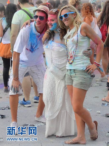 “2014巴塞羅那霍利節”現場的年輕人 (新華社記者周喆拍攝)