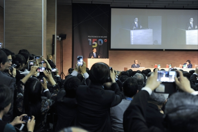 克強(qiáng)總理的到來(lái)受到了米蘭理工大學(xué)師生的熱烈歡迎,大家揮舞著手中的兩國(guó)國(guó)旗,歡呼著迎接克強(qiáng)總理的到來(lái),不少學(xué)生紛紛拿出手機(jī)拍照。除了米蘭理工大學(xué)的師生,參加今天活動(dòng)的還有不少中意兩國(guó)創(chuàng)新行業(yè)的企業(yè)家。