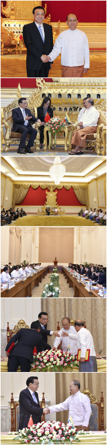 ??? 新華網北京11月14日電 據新華社“新國際”微博報道,李克強總理14日在內比都與緬甸總統吳登盛會談時說,中緬“胞波”情誼深厚,愿中緬永做好鄰居、好朋友、好伙伴,中國政府支持中國企業參與緬基礎設施建設,使更多當地民眾受益。會談后,兩國領導人見證了經貿、農業、金融、能源等領域合作文件的簽署。
