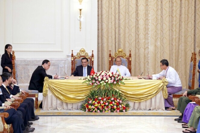 11月14日,李克強總理與緬甸總統吳登盛見證兩國簽署多份協議。