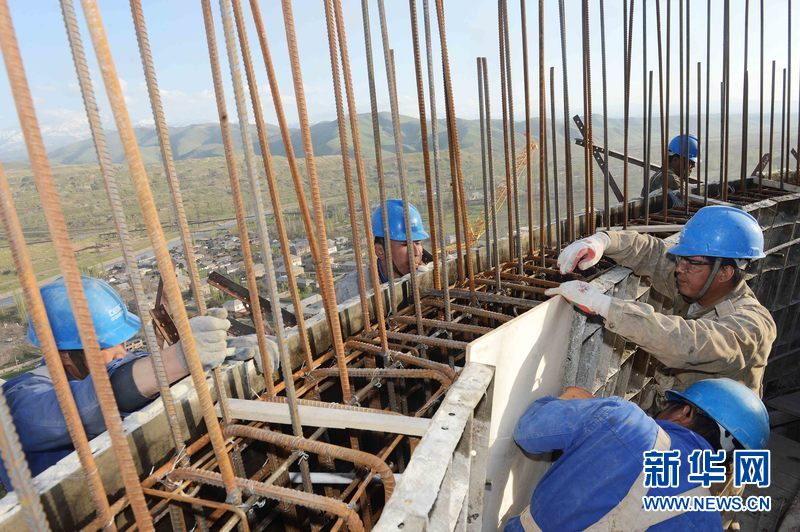 4月16日,烏茲別克斯坦安格連(市)電廠主廠房鋼結構施工現場。新華網發 記者沙達提 攝
