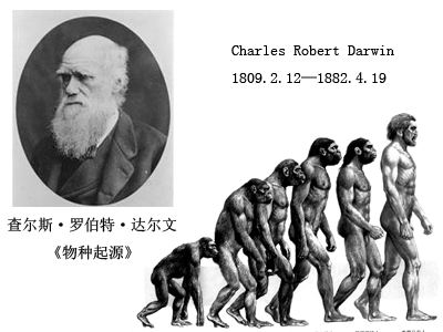 達爾文——英國生物學家、進化論的奠基人。出版《物種起源》,提出了生物進化論學說,從而摧毀了各種唯心的神造論以及物種不變論。除了生物學外,他的理論對人類學、心理學、哲學的發展都有不容忽視的影響。