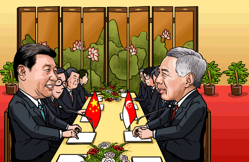 中國和新加坡是親密友好鄰邦,建交25年來,兩國關系日益密切,各領域交流與合作不斷深化拓展,為兩國和兩國人民帶來福祉,也為地區和平穩定、發展繁榮作出了積極貢獻。習主席此訪成果豐富,意義重大,在新的歷史起點上規劃兩國關系未來,為兩國互利合作開辟前景。習近平此訪還向東盟重申了中國堅持走和平發展道路、堅定發展同東盟友好合作的一貫立場,歡迎東盟搭乘中國發展“快車”、“便車”,共同推進“一帶一路”建設,攜手實現和平、發展、合作的愿景。(作者系中國社會科學院世界經濟與政治研究所國際政治經濟學研究室副主任徐秀軍 漫畫作者李峰)