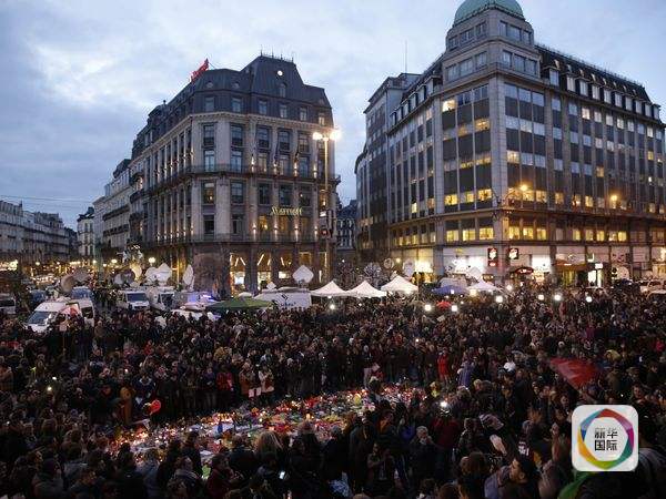 布魯塞爾,數百民眾圍聚在廣場上,悼念恐襲遇難者。(圖片來源:新華/法新)