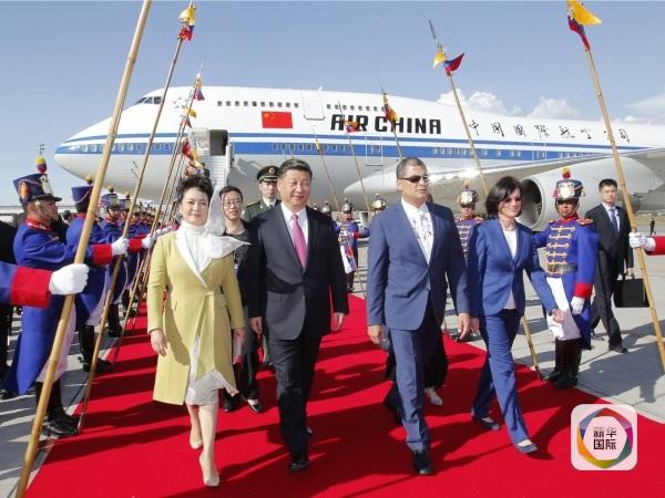 為了迎接習主席夫婦,科雷亞總統(tǒng)打破厄國內《公共典禮條例》和總統(tǒng)不赴機場迎送外國元首的慣例,親赴機場主持隆重的歡迎儀式;兩名身著民族服裝的當?shù)貎和蛄曋飨驄D獻上鮮花;兩國元首登上檢閱臺,軍樂隊奏響中厄兩國國歌。習主席和科雷亞總統(tǒng)分別發(fā)表了熱情洋溢的致辭。