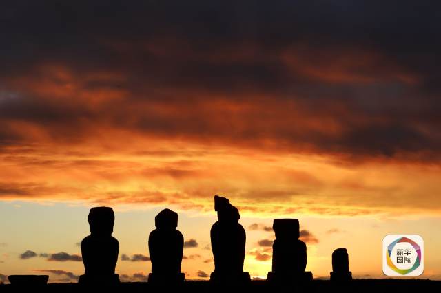 復活節島上的巨人石像排成一列。(新華社記者葉書宏攝)