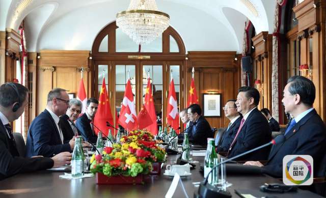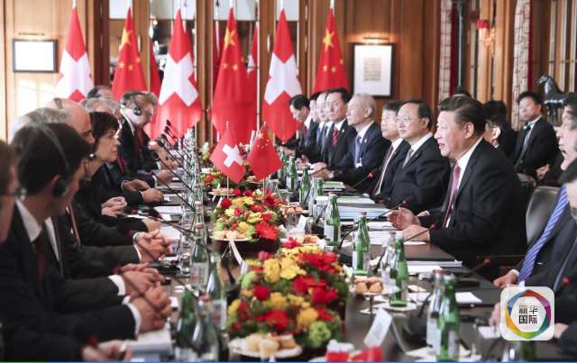 1月16日,國家主席習近平在伯爾尼同瑞士聯邦主席洛伊特哈德舉行會談。(新華社記者 饒愛民 攝)