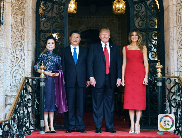 當地時間4月6日,國家主席習近平在美國佛羅里達州海湖莊園同美國總統特朗普舉行中美元首會晤。這是習近平和夫人彭麗媛同特朗普和夫人梅拉尼婭合影留念。(新華社記者饒愛民攝)