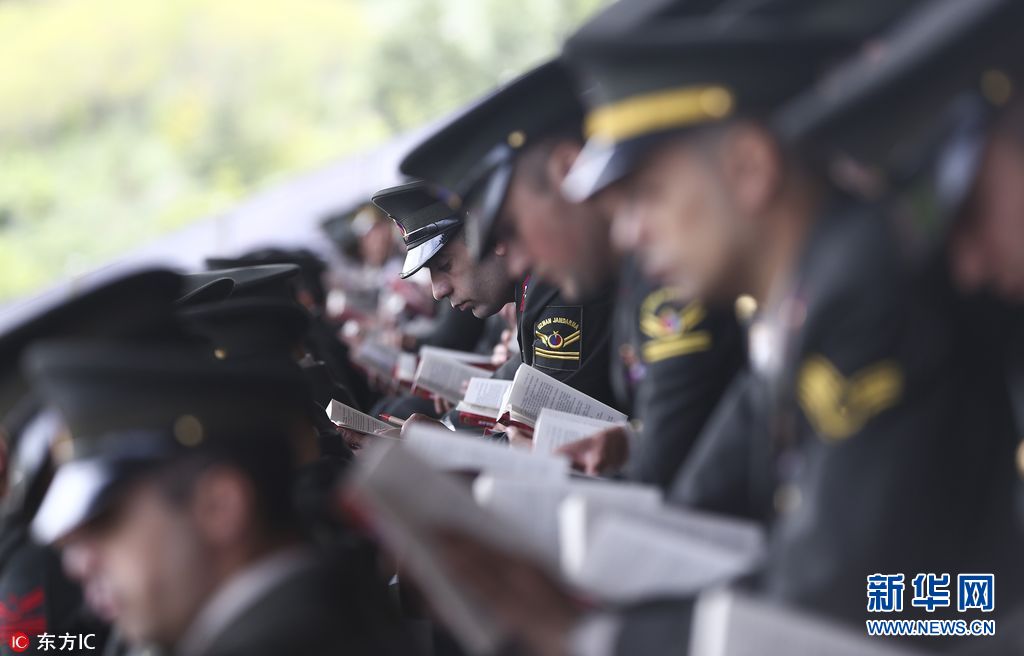 當地時間2017年5月18日,土耳其安卡拉,在憲兵和海岸警衛(wèi)學院體育場,土耳其憲兵參加集體讀書活動,打破“最多人一起讀書”吉尼斯紀錄,慶祝憲兵部成立178周年。包括土耳其憲兵、海岸警衛(wèi)隊及其家人在內等5754人參加了這一集體活動。(圖片來源:東方IC)