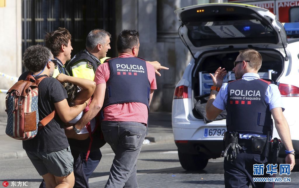 當地時間2017年8月17日,西班牙巴塞羅那,當地發生汽車沖撞人群事件。警方稱,一輛白色貨車在巴塞羅那市中心蘭布拉大道加泰羅尼亞廣場附近沖撞人群,導致多人死傷。警方已經將此次事件初步認定為恐怖襲擊。