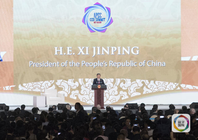 11月10日,國家主席習近平應邀出席在越南峴港舉行的亞太經合組織工商領導人峰會并發表題為《抓住世界經濟轉型機遇 謀求亞太更大發展》的主旨演講。新華社記者王曄攝