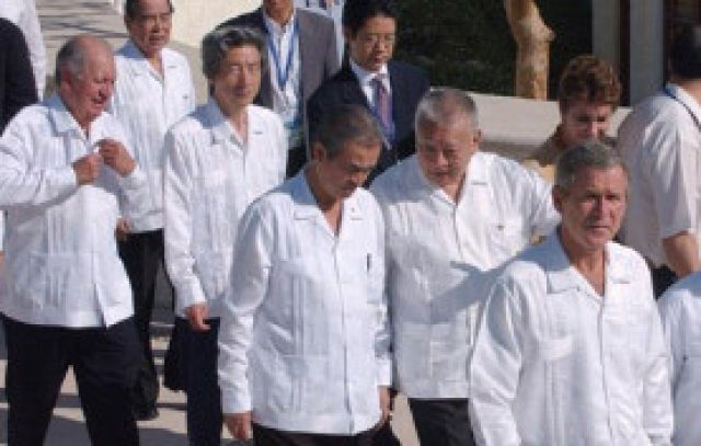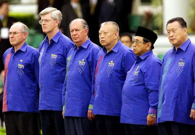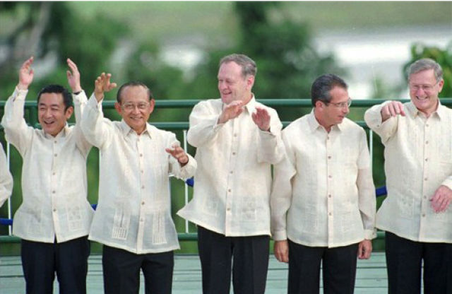 時任印尼總統蘇哈托贈送每位領導人一件巴提克——一種蠟染印花襯衣。