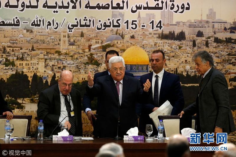 1月14日,約旦河西岸拉馬拉,巴勒斯坦總統阿巴斯在巴勒斯坦中央委員會會議上發表講話,并稱以色列已經“終止”了奧斯陸協議。(圖片來源:視覺中國)