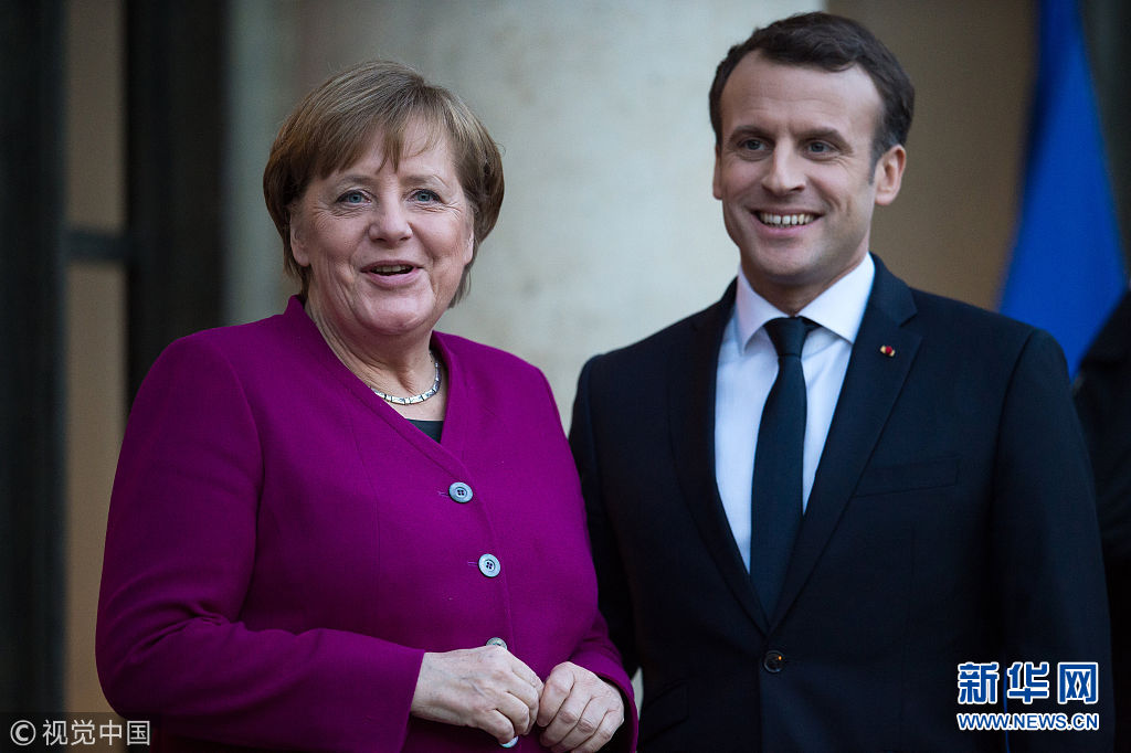 當(dāng)?shù)貢r間2018年1月19日,法國巴黎,法國總統(tǒng)馬克龍在愛麗舍宮會晤到訪的德國總理默克爾,表示在推動歐洲改革的進程中,法國需要德國。馬克龍以此對面臨大選后組閣危機的默克爾表達支持。馬克龍在會后強調(diào)了法德合作的重要性。他表示,法國無法單獨實現(xiàn)自身的抱負,需要與德國的抱負結(jié)合起來。