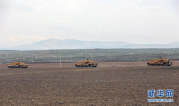 1月21日,在土耳其哈塔伊省與敘利亞邊境地區,土軍地面部隊開往敘利亞北部阿夫林。土耳其總理耶爾德勒姆21日宣布,土耳其軍隊當天上午已進入敘利亞邊境,展開對敘北部阿夫林的地面軍事行動。 新華社發