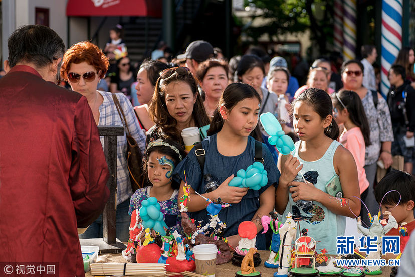 當(dāng)?shù)貢r(shí)間1月28日,美國(guó)洛杉磯,當(dāng)?shù)谿rove商場(chǎng)舉行少林武術(shù)表演以及其他中國(guó)文化類的演出,慶祝傳統(tǒng)新年,場(chǎng)外攤位還有傳統(tǒng)剪紙,捏面人,糖畫,彩繪等項(xiàng)目。圖為捏面人。(圖片來(lái)源:視覺(jué)中國(guó))