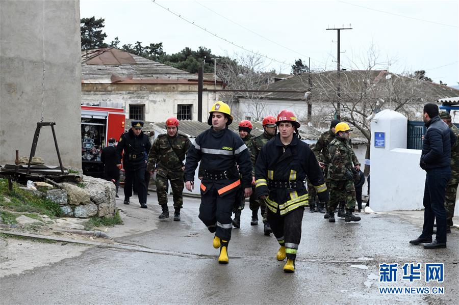 3月2日,在阿塞拜疆首都巴庫,消防人員趕往火災現(xiàn)場救援。 新華社發(fā)(巴巴耶夫攝)