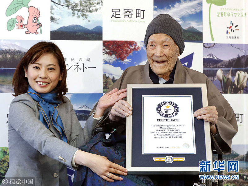 4月10日,日本足寄,日本男子Masazo Nonaka以112歲259天的年齡,獲得吉尼斯認(rèn)證的世界目前在世年齡最長(zhǎng)的男性。 (圖片來源:視覺中國(guó))