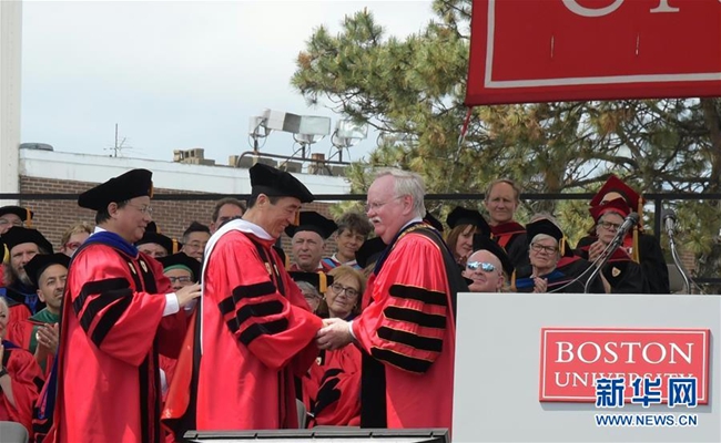 新華社美國波士頓5月20日電(記者徐劍梅)在美國波士頓大學20日舉行的2018屆畢業典禮上,中國導演張藝謀被授予波士頓大學人文藝術榮譽博士學位。