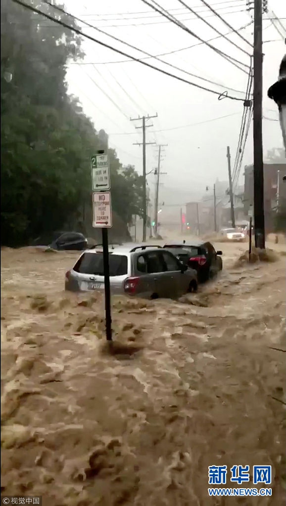 美國馬里蘭州爆發(fā)洪水 城市街道變湍急河流