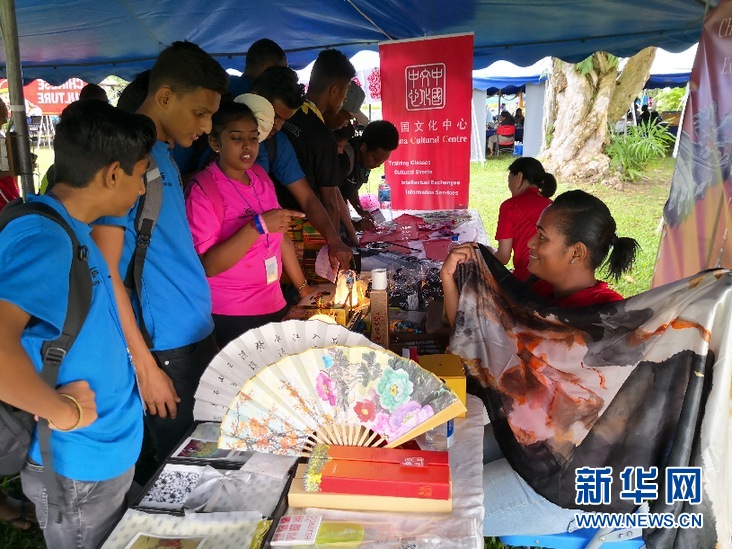 斐濟(jì)青少年正在了解中國的文化創(chuàng)意產(chǎn)品。 新華網(wǎng)記者張永興 攝