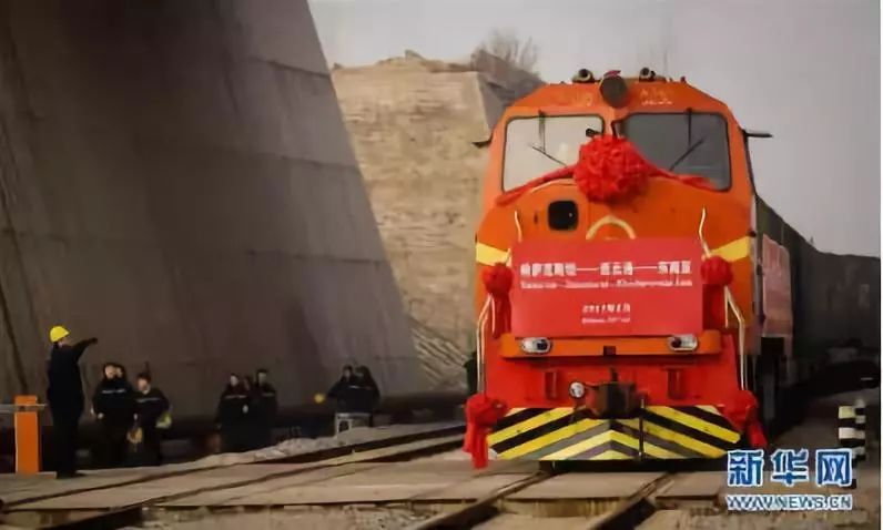 2017年2月5日,一輛哈薩克斯坦火車駛入中哈連云港物流中轉基地。新華社記者 李響 攝