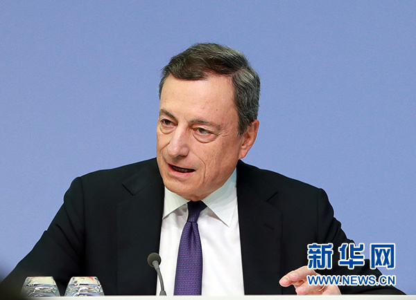 7月26日,在德國法蘭克福的歐洲中央銀行總部,歐洲央行行長德拉吉出席新聞發布會。 新華社記者 羅歡歡 攝