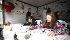 圍繞著中央舞臺,剪紙、書法、針灸等展位前人頭攢動,吸引了許多聞訊而來的華僑華人和當地民眾。巴西瓦加斯基金會華人教授夏華聲帶著兩個兒子前來參加活動。