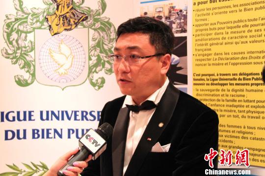 9月21日晚,中國工筆畫家崔景哲在巴黎榮獲全球公益聯(lián)盟文學(藝術(shù))金質(zhì)勛章,也是此次頒獎典禮所有獲獎者中唯一一位中國人。圖為崔景哲接受媒體采訪。李洋 攝