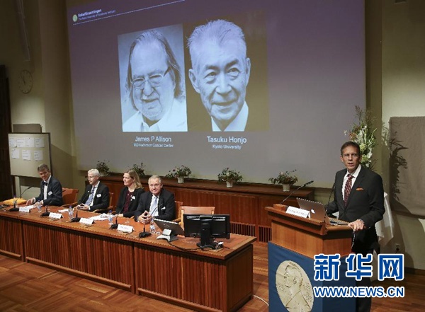 新華社斯德哥爾摩10月1日電(記者張家偉 付一鳴)瑞典卡羅琳醫(yī)學院10月1日宣布,將2018年諾貝爾生理學或醫(yī)學獎授予美國科學家詹姆斯·艾利森和日本科學家本庶佑,以表彰他們在癌癥免疫治療方面所作出的貢獻。