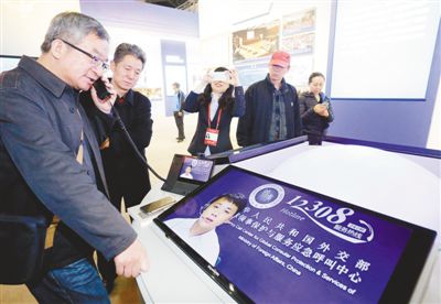 2017年10月27日,市民在北京展覽館體驗(yàn)外交部全球領(lǐng)事保護(hù)與服務(wù)應(yīng)急呼叫中心12308熱線。人民視覺