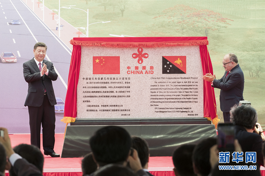 11月16日,國(guó)家主席習(xí)近平在莫爾茲比港和巴布亞新幾內(nèi)亞總理奧尼爾共同出席中國(guó)援建的獨(dú)立大道移交啟用儀式。新華社記者 黃敬文 攝