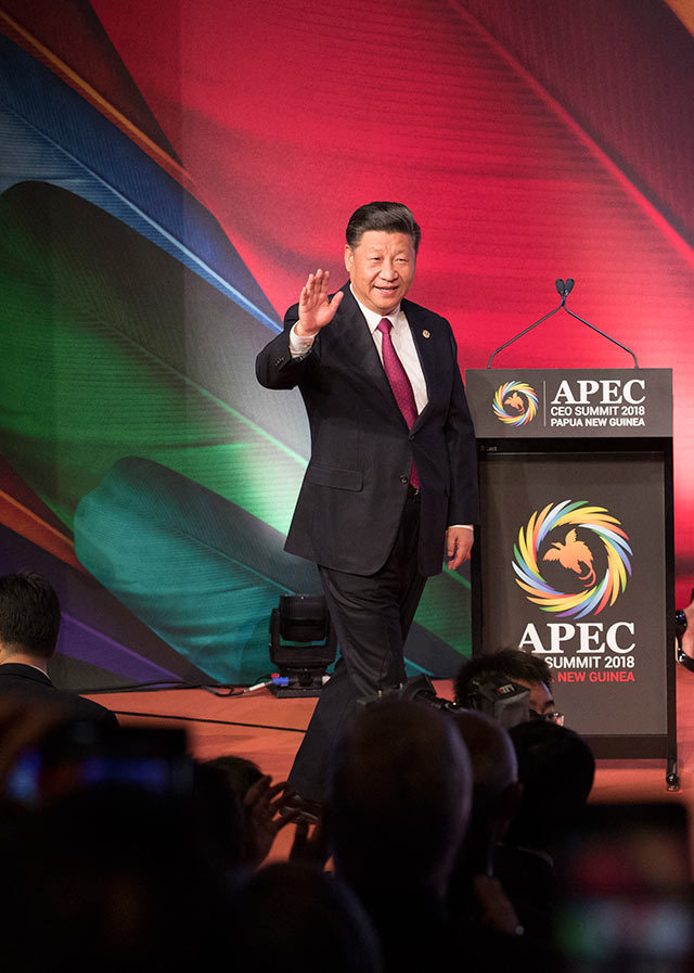 11月17日,國家主席習(xí)近平應(yīng)邀出席在巴布亞新幾內(nèi)亞莫爾茲比港舉行的亞太經(jīng)合組織工商領(lǐng)導(dǎo)人峰會(huì)并發(fā)表題為《同舟共濟(jì)創(chuàng)造美好未來》的主旨演講。新華社記者 鞠鵬 攝