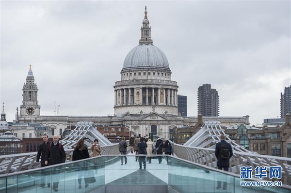 這是3月6日,在英國倫敦,人們從通往倫敦金融城的千禧橋上走過。 新華社發(fā)(史蒂芬·程 攝)