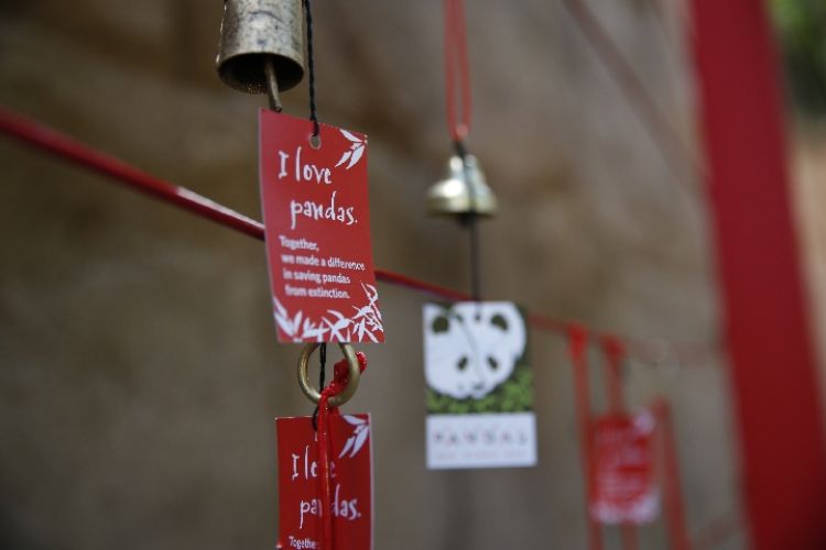 這是4月6日在美國圣迭戈動物園“大熊貓友誼墻”拍攝的祝福簽。(新華社記者 李穎 攝)