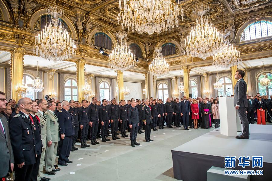 馬克龍接見參與巴黎圣母院救火任務消防員