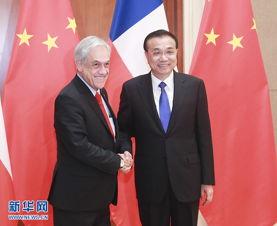 李克強表示,智利是第一個同新中國建交的南美國家,明年將迎來兩國建交50周年。習近平主席同總統先生舉行了富有成果的會談,為中智全面戰略伙伴關系深入發展注入新動力。去年,在全球貿易增長乏力背景下,中智貿易逆勢增長,顯示出兩國合作的巨大潛力。希望雙方面向未來,以深入共建“一帶一路”為契機,加強發展戰略對接,建設好升級版中智自貿區,拓展在交通基礎設施、電力、農業、礦業、創新等領域的務實合作。中方愿進口更多智利優質產品,發揮電子商務等數字經濟平臺作用,并利用中智自貿區擴大同拉美其他國家的經貿合作,不斷推動中拉整體關系與合作向前發展。