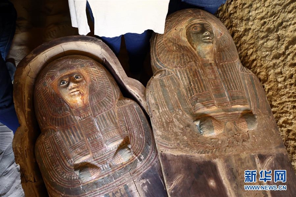 吉薩高地總干事阿什拉夫·穆希介紹說,該墓地在古埃及后期(公元前712年至前323年)被多次重復使用,考古隊在該墓地中發掘出多座古埃及后期的木質棺槨和一些喪葬用木質及石質面具,很多還保存有顏色。