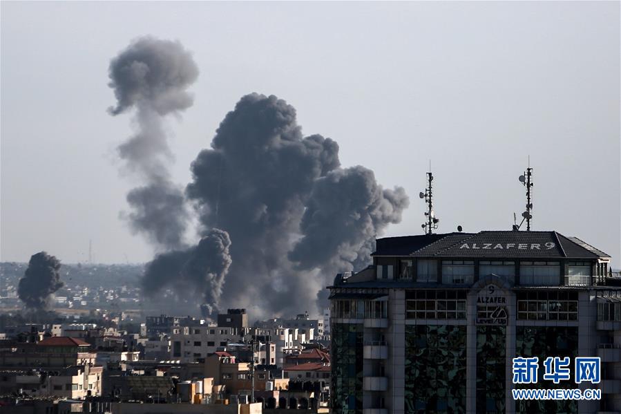 5月4日,以軍轟炸造成的濃煙在加沙城升起。新華社發(fā)