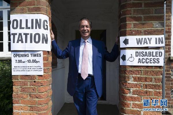 5月23日,在英國(guó)比金希爾,“脫歐黨”領(lǐng)袖奈杰爾·法拉奇在投票后離開。五年一次的歐洲議會(huì)選舉于5月23日至26日舉行。新華社發(fā)(雷伊·唐攝)