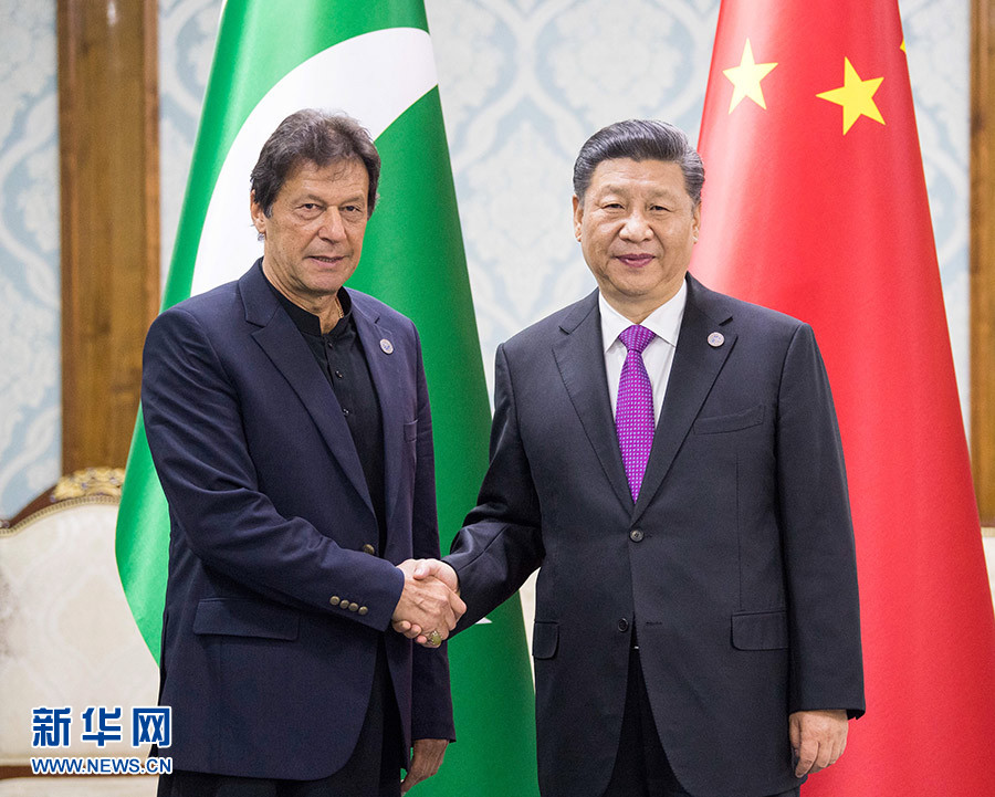 6月14日,國家主席習近平在比什凱克會見巴基斯坦總理伊姆蘭·汗。 新華社記者 李學仁 攝