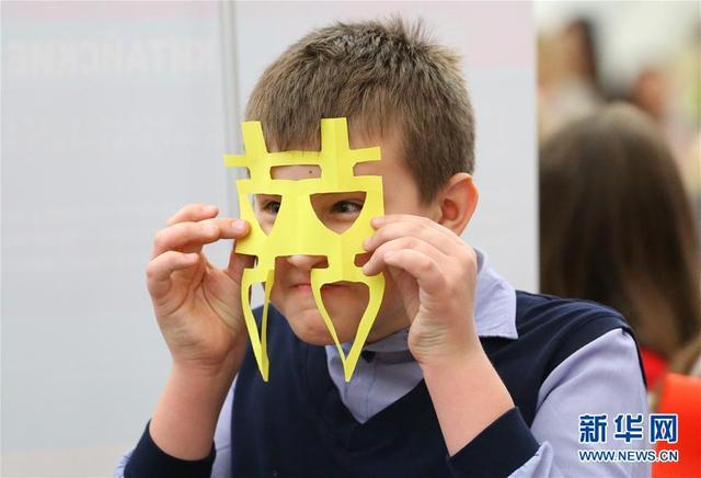 1月16日,在白俄羅斯首都明斯克,一名學生展示自己的剪紙作品。當日,為期四天的“歡樂春節”演出活動在白俄羅斯拉開帷幕。來自中國江西省歌舞劇院的演員們將帶來四場演出,展現中國春節文化,與當地人民共享快樂。新華社發(任科夫攝)
