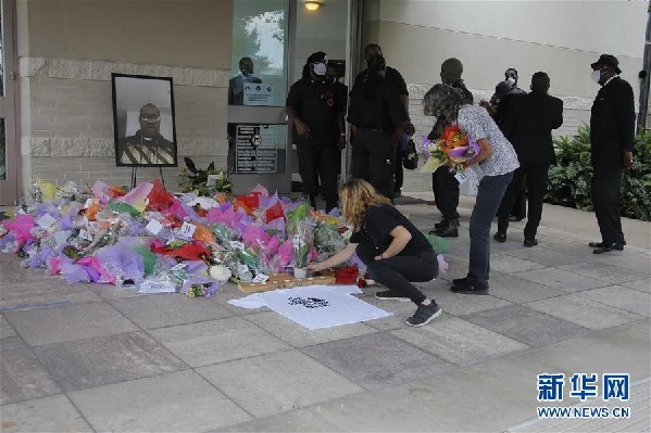 6月9日,在美國得克薩斯州休斯敦,人們在舉行弗洛伊德葬禮的教堂外獻花。因警察暴力執法而死亡的非裔美國人弗洛伊德的葬禮9日在其“家鄉”——休斯敦市的一座教堂舉行。葬禮結束后,弗洛伊德的遺體被運往休斯敦一處墓地安葬。新華社發(勞承躍攝)