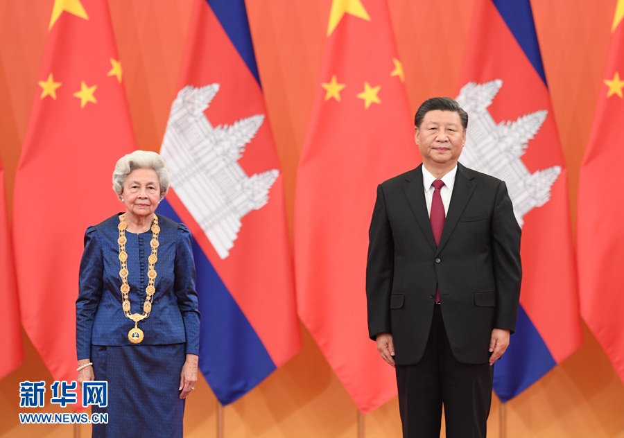 習近平為柬埔寨太后莫尼列舉行中華人民共和國“友誼勛章”頒授儀式