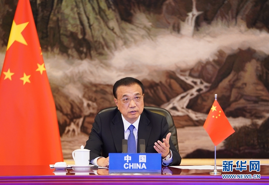 11月14日下午,國務(wù)院總理李克強(qiáng)在北京人民大會(huì)堂出席第23次東盟與中日韓(10+3)領(lǐng)導(dǎo)人會(huì)議。會(huì)議以視頻形式舉行。新華社記者 張領(lǐng) 攝