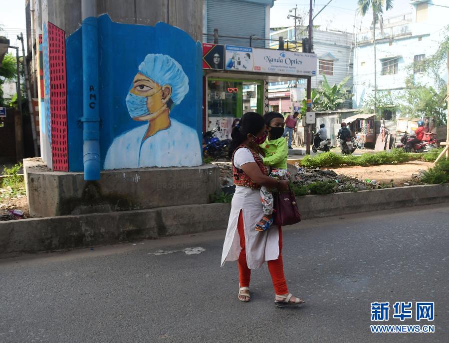 11月25日,在印度阿加爾塔拉,一名女子抱著孩子在街頭行走。新華社發