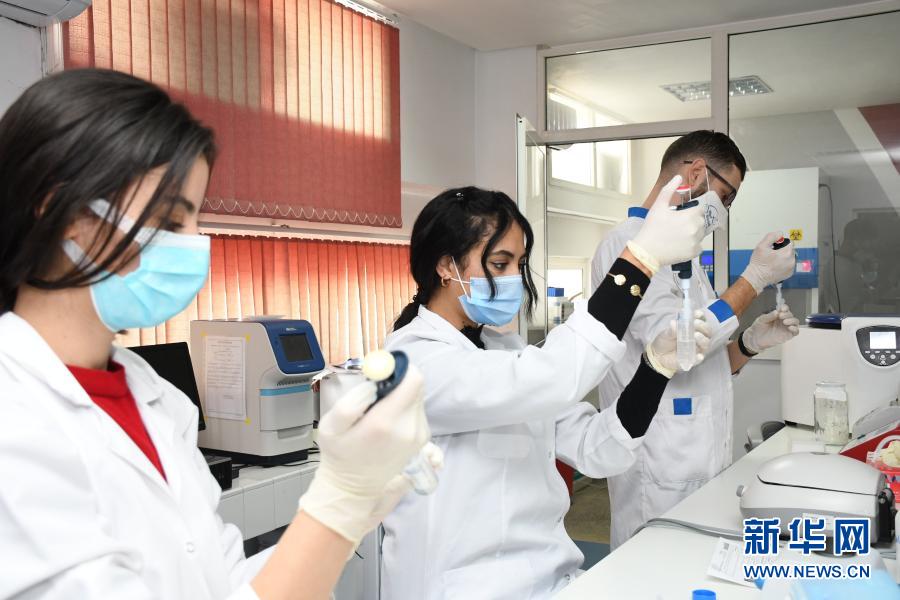 11月25日,在摩洛哥拉巴特,醫務人員在實驗室里工作。新華社發(查迪攝)