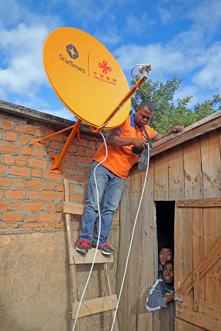 “萬村通”項目是2015年中非合作論壇約翰內(nèi)斯堡峰會提出的中非人文領域合作舉措之一,旨在為非洲國家的一萬個村莊接入衛(wèi)星數(shù)字電視信號。這一項目由中國的四達時代集團承建。