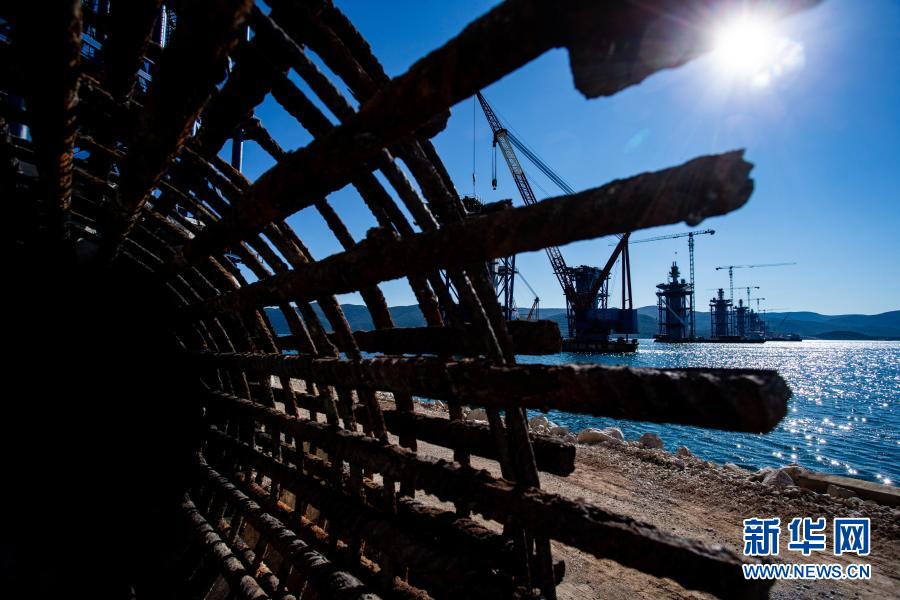 這是10月20日在克羅地亞南部拍攝的佩列沙茨跨海大橋施工現場。施工水域同時也是海豚的“游樂場”。2018年大橋開始施工至今,海豚并沒有受到打擾,它們在水中跳躍嬉戲的視頻不時出現在社交網絡上。新華社發(米蘭·薩比奇攝)