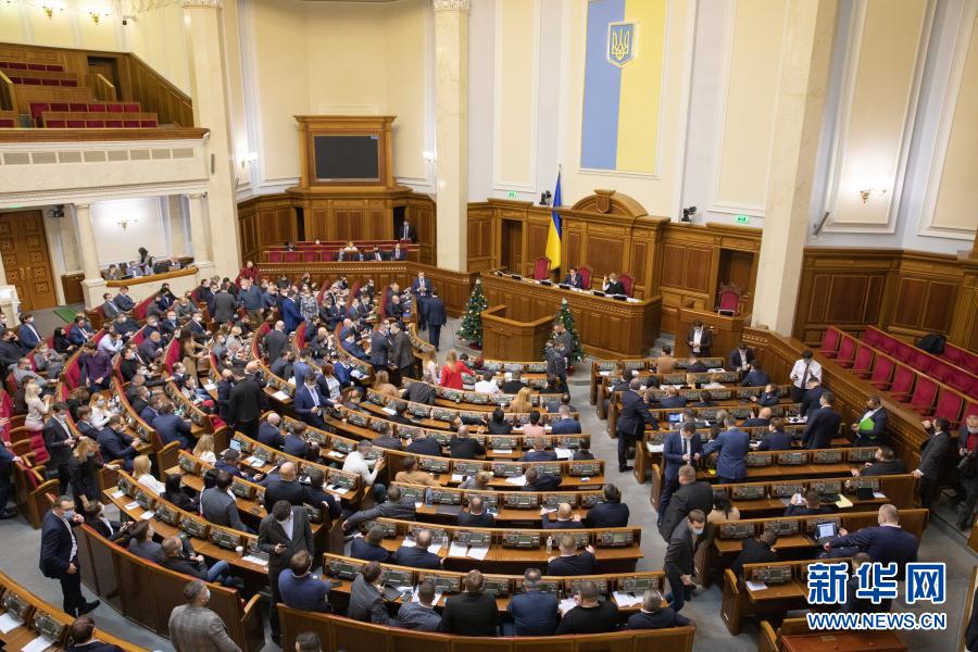 12月15日,在烏克蘭基輔,烏最高拉達(議會)召開會議討論頓巴斯地區特殊地位法延期。新華社發(亞歷山大·庫茲敏攝)